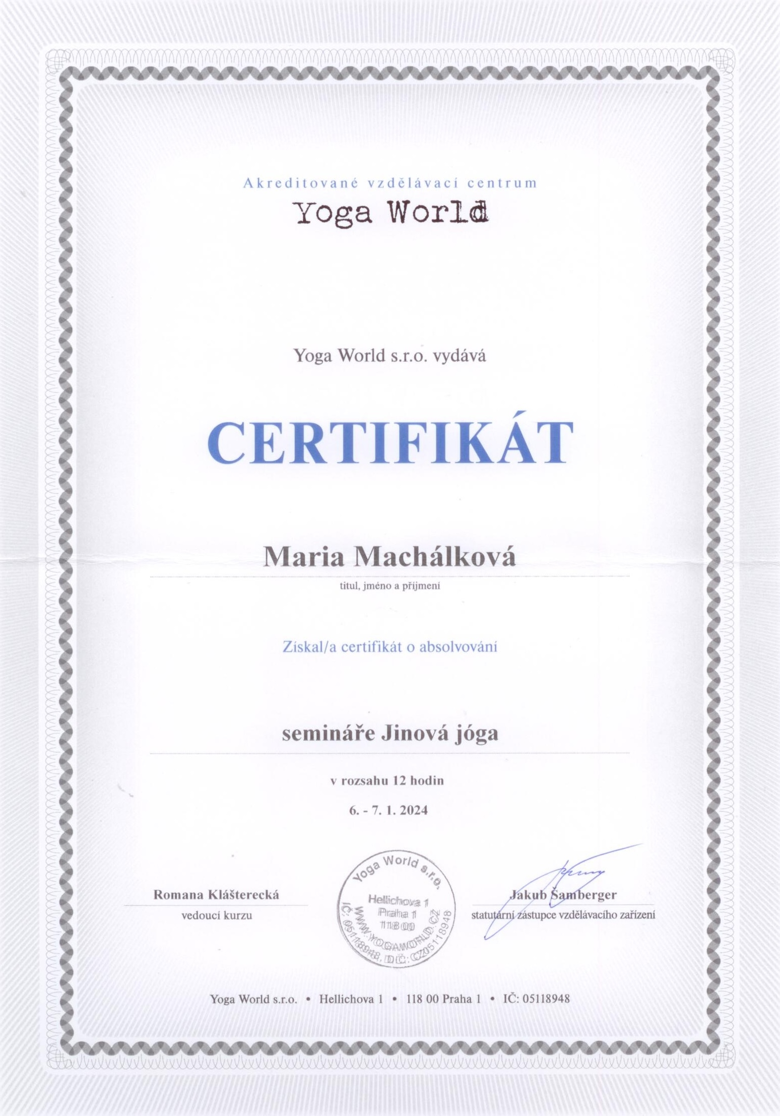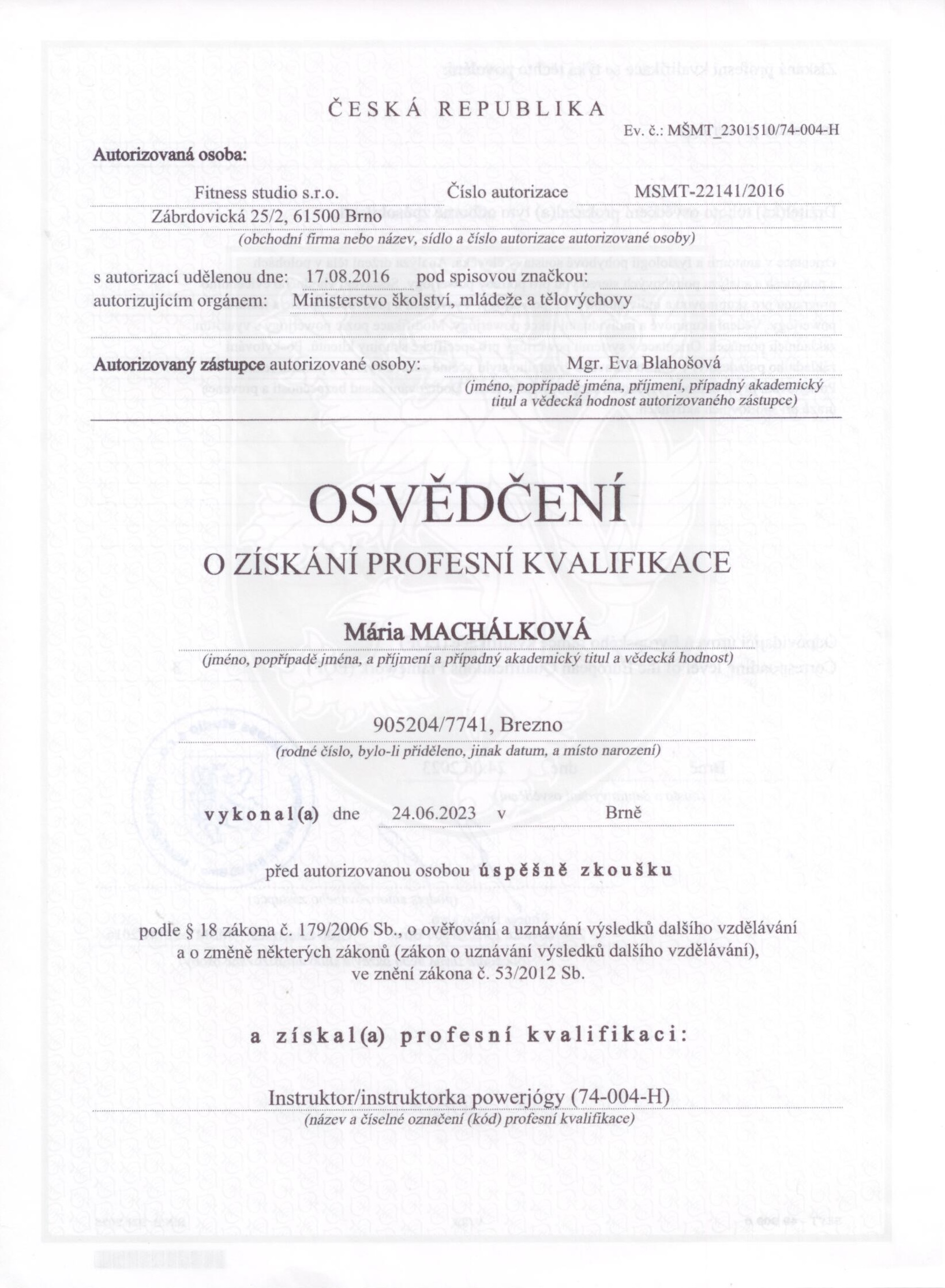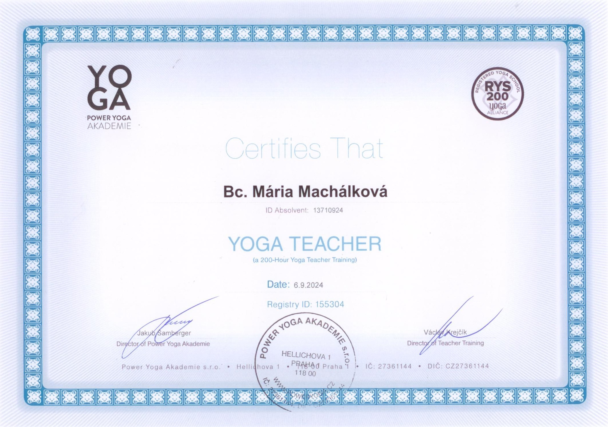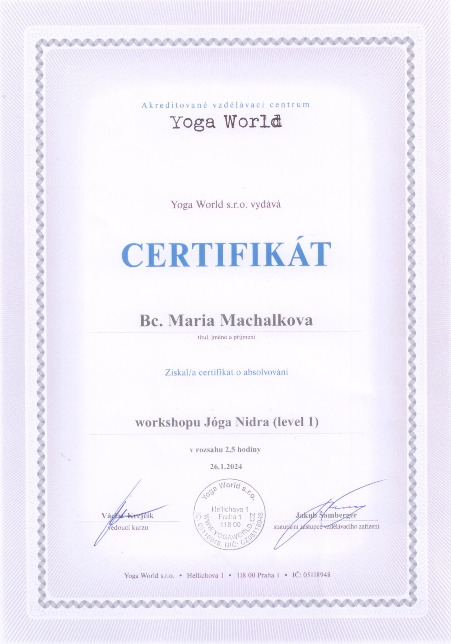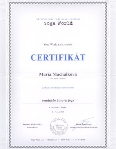 Jsem certifikovaná instruktorka jógy